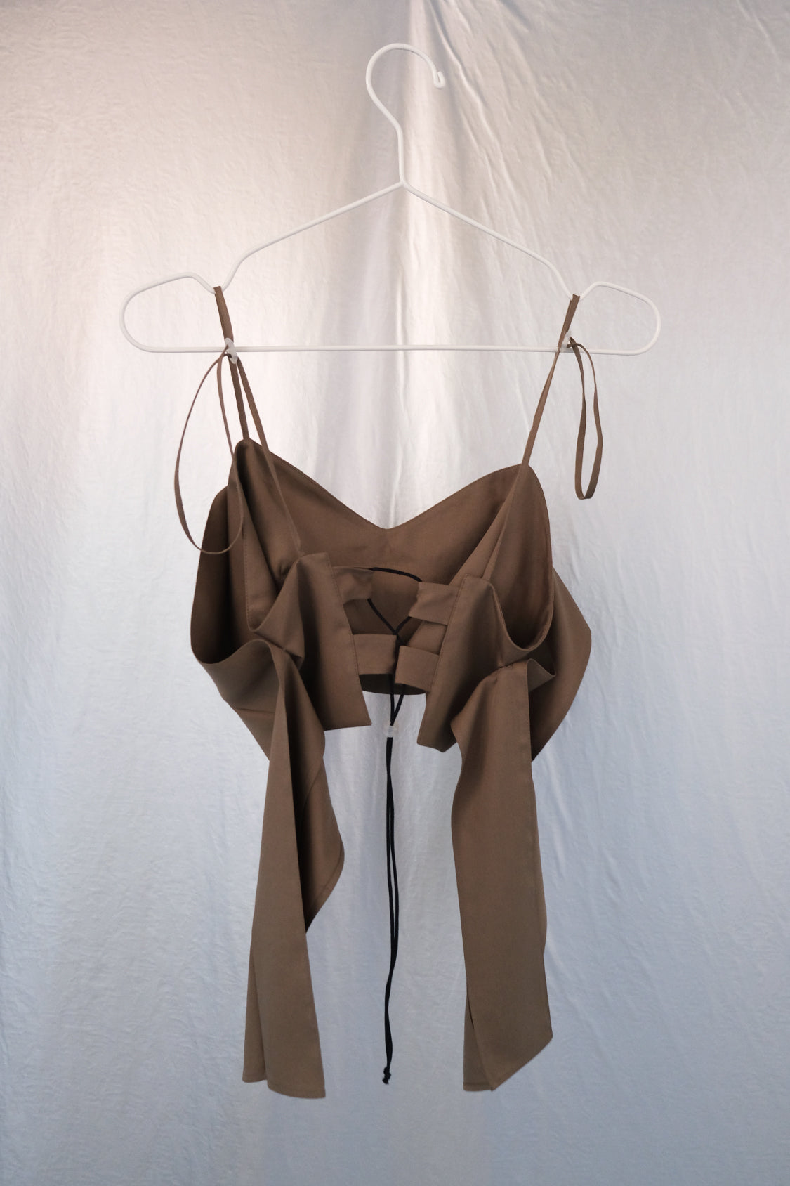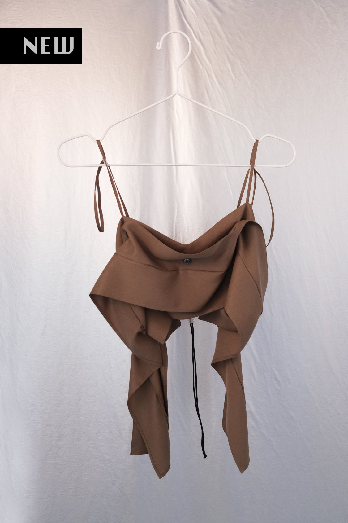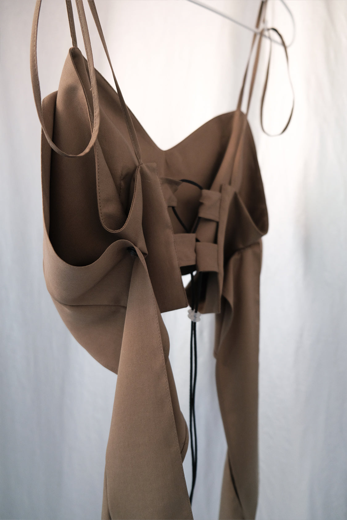 The Saila Micro Top embodies SHOHEI’s architectural elegance with an origami-inspired aesthetic. Crafted from silk touch Lyocell TENCEL, it features a detachable pleated panel at the front and adjustable lacing at the back, allowing for versatile styling and a personalised fit.