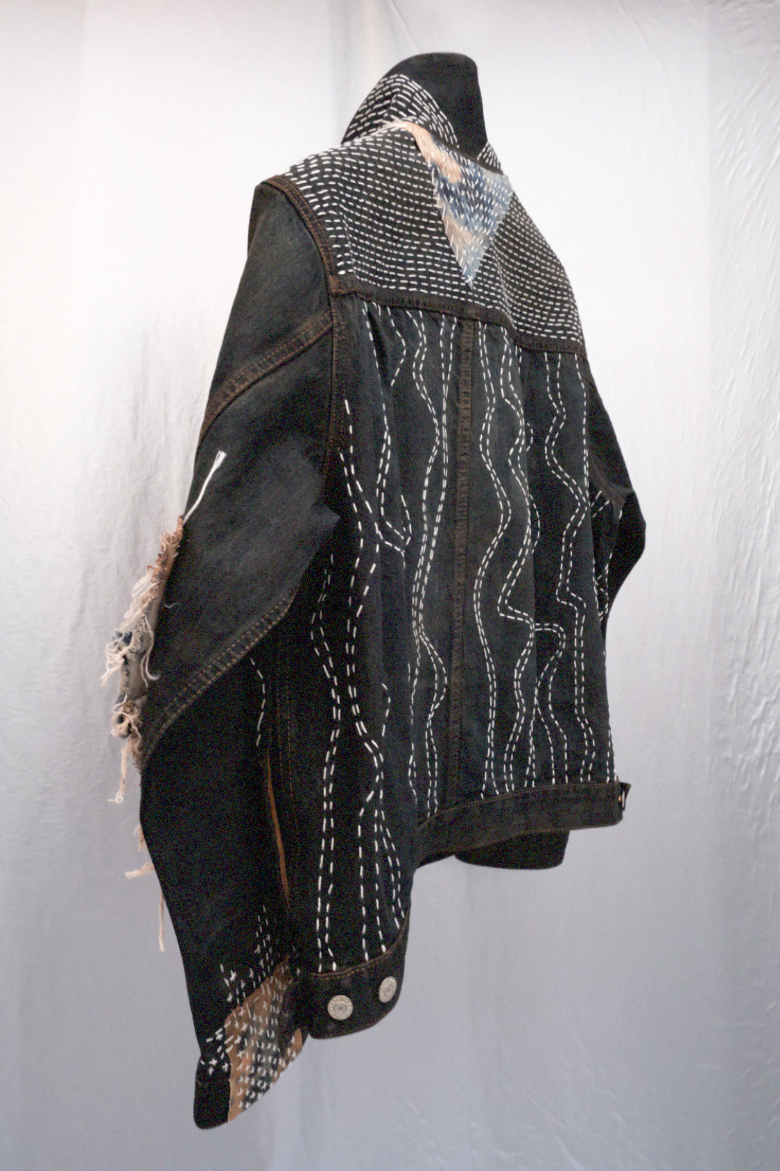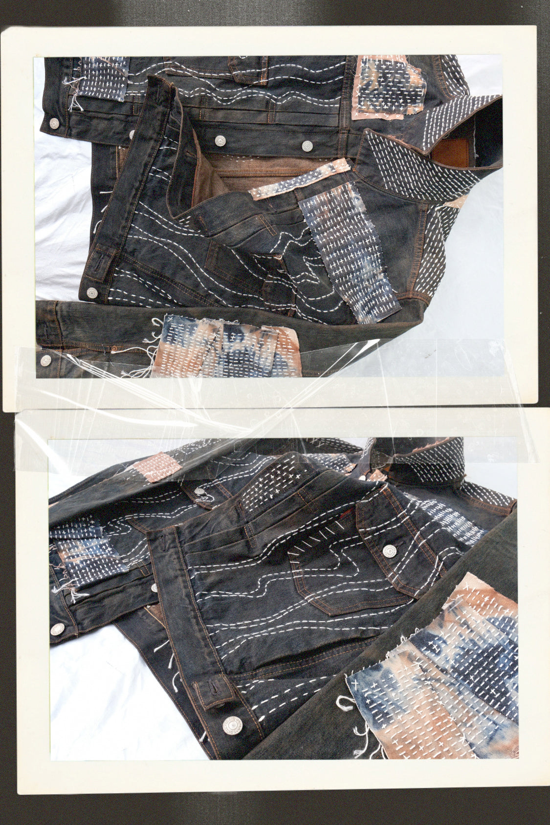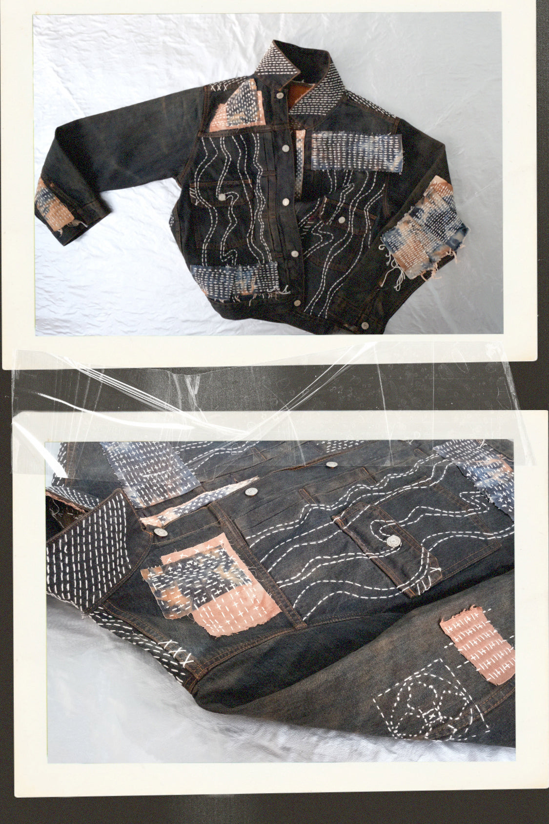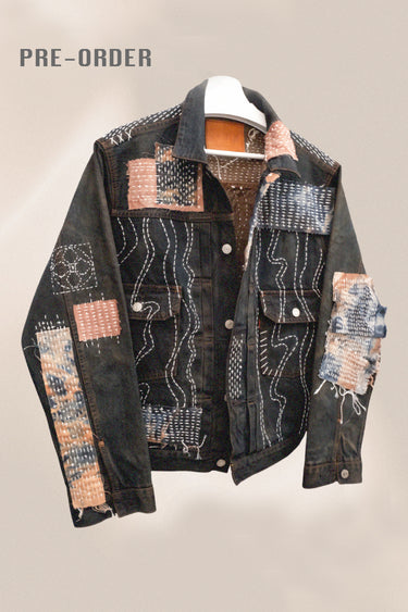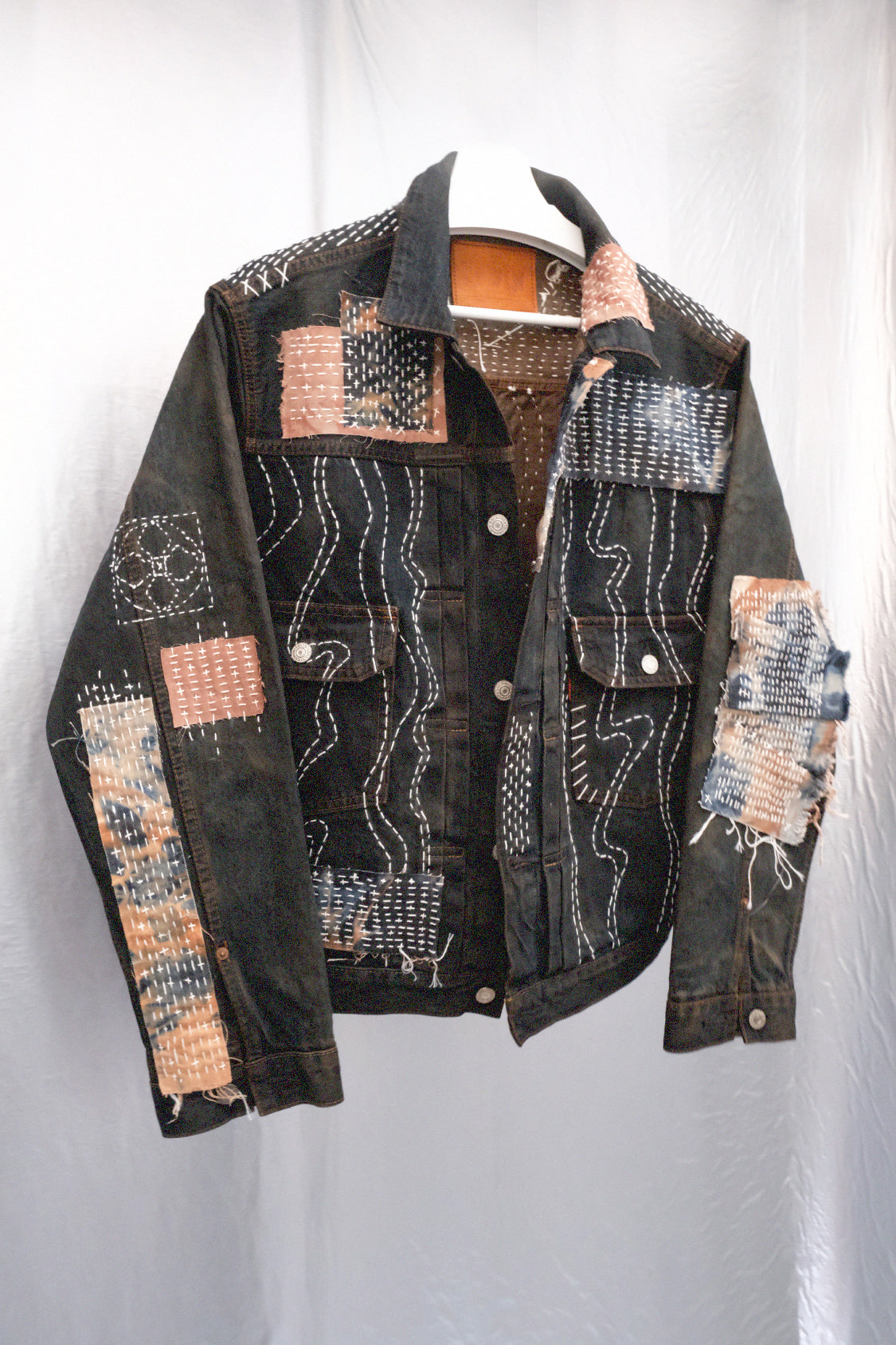 Discover the iconic EDWIN denim jacket remake design by SHOHEI, using the Kyoto-made Kakishibu dye and authentic Sashiko stitching design.