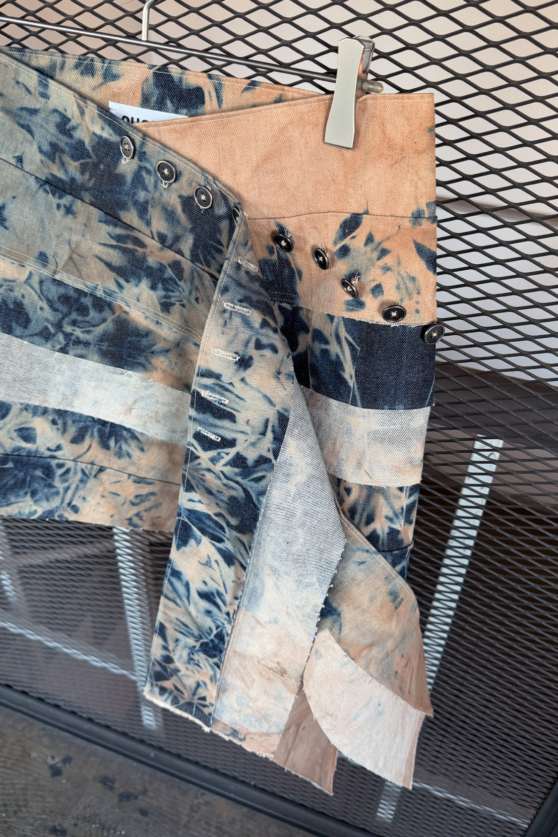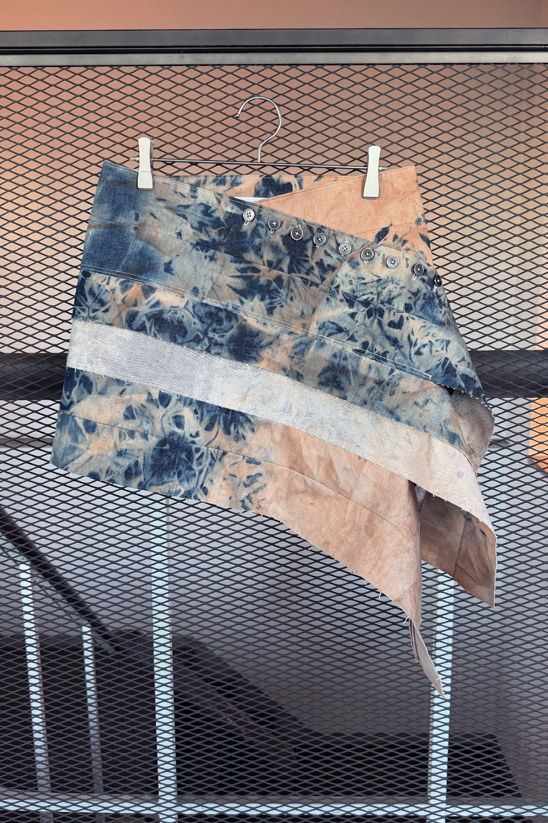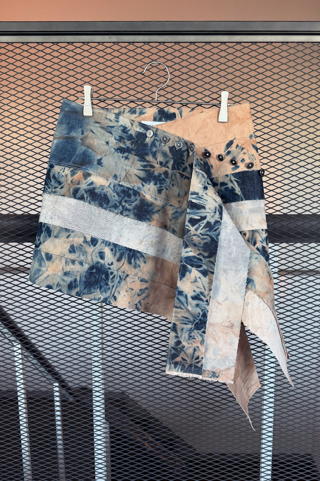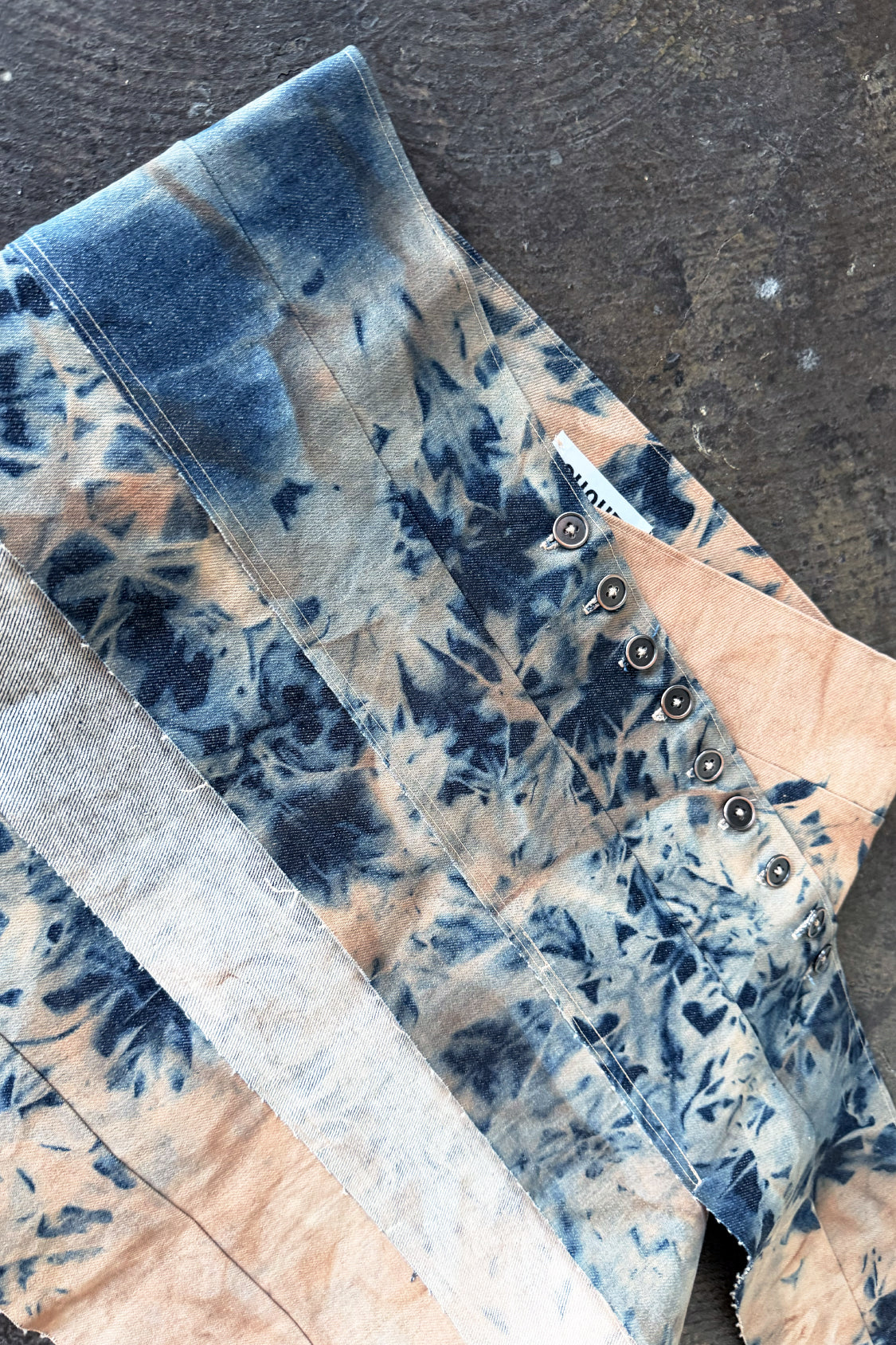 Introducing the Yurie Denim Mini Skirt, a refined new arrival crafted from Lyocell denim and finished with an artisanal textile dye developed in Kyoto. Defined by its zero-waste design, highlighted with an asymmetric placed adjustable button closure upfront